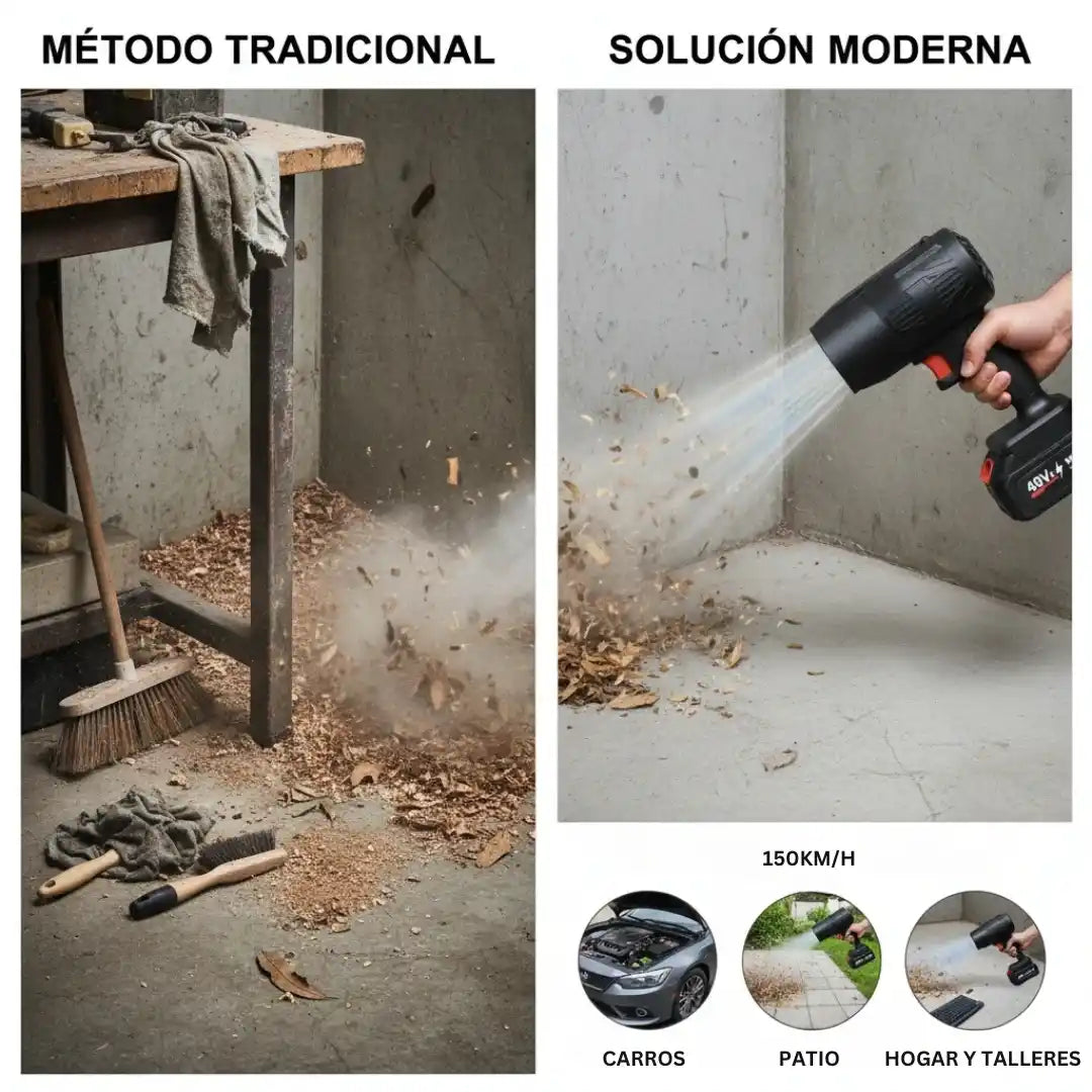 Llegas a casa y ves polvo en rincones difíciles, hojas en el patio, el carro sucio o el taller lleno de residuos… y solo pensar en limpiarlo ya cansa. Antes necesitabas escoba, trapo y mil herramientas, tardabas demasiado y el resultado no siempre era el mejor.