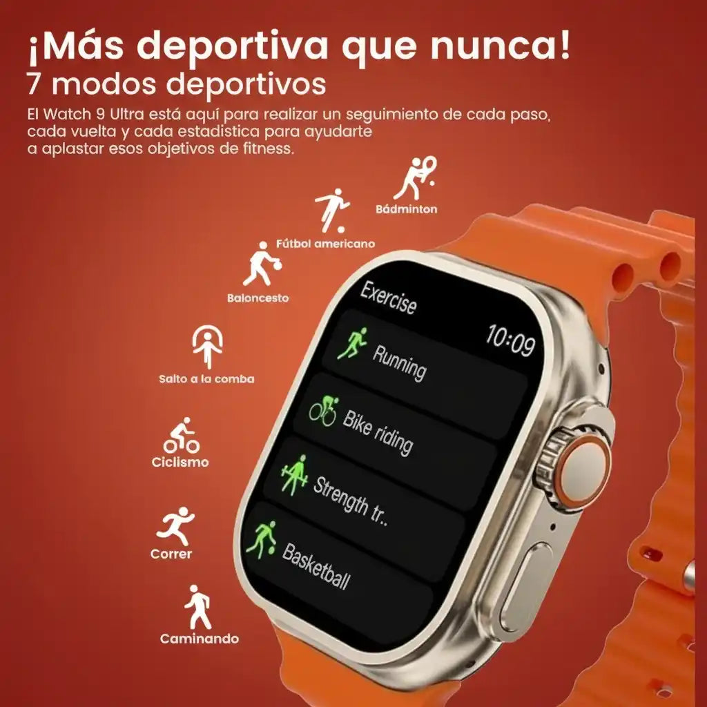 - El Reloj Inteligente T900 Ultra trabaja desde afuera, permitiéndote monitorear ritmo cardíaco, actividad física, movimiento diario y notificaciones, todo en tiempo real.