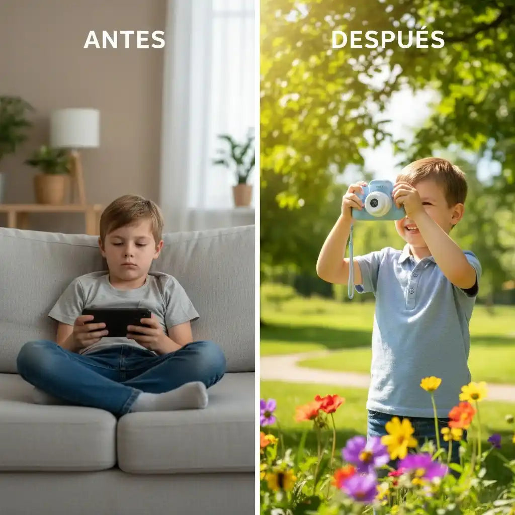 Imagina a tu hijo descubriendo lo extraordinario en lo cotidiano: tomando fotos de su mascota 🐶, capturando flores en el parque 🌼, grabando sus aventuras con sus amigos, o documentando un día especial en familia.